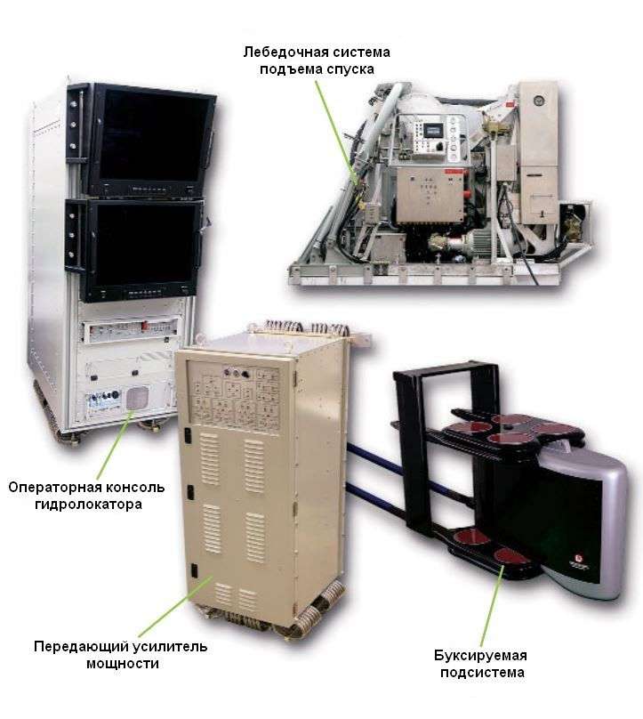 Высокоскоростной намоточный механизм позволяет выполнять погружение трансдьюсера на максимальную глубину в течение 3,5 минут, а индикация азимута и дальности до цели обеспечивается видеодисплеем оператора.
